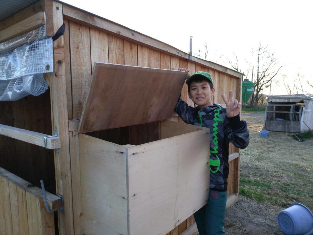 困ったぞ!GW、研牧は人手不足です。そこで、将来の夢は大工さんという、息子の同級生に電話をしたら、町から駆けつけてくれました。